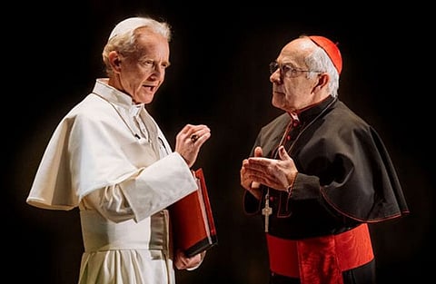 വിരമിച്ച പാപ്പാ ബെനഡിക്ട് പതിനാറാമനും ഫ്രാന്സിസ് മാര്പാപ്പയും മുഖ്യകഥാപാത്രങ്ങളാകുന്ന നാടകം ഇംഗ്ലണ്ടിലെ നോര്ത്താംപ്ടന് തിയേറ്ററില് മൂന്നു ആഴ്ച അരങ്ങേറി. ബെനഡിക്ട് പതിനാറാമന്റെ സ്ഥാനത്യാഗവും തുടര്ന്നുള്ള ഫ്രാന്സിസ് പാപ്പായുടെ തിരഞ്ഞെടുപ്പുമാണ് നാടകത്തിന്റെ മുഖ്യപ്രമേയം. ന്യൂസിന്റ് സ്വദേശിയും വിഖ്യാത ഹോളിവുഡ് തിരക്കഥാകൃത്തുമായ ആന്റണി മക് കാര്ട്ടനാണു നാടകം രചിച്ചത്. സ്റ്റീഫന് ഹോക്കിംഗ്, വിന്സ്റ്റണ് ചര്ച്ചില്, ബ്രിട്ടീഷ് ഗായകന് ഫ്രെഡി മെര്ക്കുറി തുടങ്ങിയരെ കുറിച്ചുള്ള ജീവചരിത്രസിനിമകളുടെ രചയിതാവാണ് അദ്ദേഹം. 20 വര്ഷങ്ങള്ക്കിടെ അദ്ദേഹം ആദ്യമെഴുതുന്ന നാടകമാണ് ദ പോപ്. ബെനഡിക്ടും ഫ്രാന്സിസും തമ്മിലുള്ള വ്യക്തിബന്ധവും ഇരുവരുടെയും ആശയലോകങ്ങള് തമ്മിലുള്ള വൈരുദ്ധ്യവും നാടകത്തില് ചര്ച്ചയാകുന്നുണ്ട്. നാടകത്തില് ആന്റണ് ലെസ്സര് ബെനഡിക്ട് പതിനാറാമനായും നിക്കോളാസ് വുഡെന്സന് ഫ്രാന്സിസ് മാര്പാപ്പയായും അഭിനയിച്ചു.