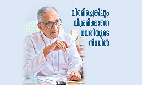 വിരമിച്ചെങ്കിലും വിശ്രമിക്കാതെ വായിച്ചും എഴുതിയും പഠിച്ചും പഠിപ്പിച്ചും കേരളസമൂഹം ശ്രദ്ധിക്കുന്ന ശബ്ദവും സാന്നിദ്ധ്യവുമായി തുടരുന്ന ആര്ച്ചുബിഷപ് ജോസഫ് പവ്വത്തില് നവതിയിലേയ്ക്കു പ്രവേശിക്കുകയാണ്. ചങ്ങനാശേരി അതിരൂപതയിലെ കുറുമ്പനാടം സ്വദേശിയായ അദ്ദേഹം എസ്.ബി. കോളേജില് നിന്നു സാമ്പത്തികശാസ്ത്രത്തില് ബിരുദവും ചെന്നൈ ലൊയോളാ കോളേജില് നിന്നു ബിരുദാനന്തരബിരുദവും നേടി, ഒരു കൊല്ലം കൂടി പിന്നിട്ട ശേഷമാണ്, വീട്ടുകാരുടെ വിയോജിപ്പുകളെ നിര്വീര്യമാക്കി സെമിനാരിയില് ചേര്ന്നത്. പുനെ സെമിനാരിയില് ദൈവശാസ്ത്ര പഠനം പൂര്ത്തിയാക്കി അവിടെ വച്ചു തന്നെ പൗരോഹിത്യം സ്വീകരിച്ച നവവൈദികനെ എസ്.ബി. കോളേജില് അദ്ധ്യാപകനും ഹോസ്റ്റല് വാര്ഡനുമായി കാവുകാട്ട് പിതാവു നിയമിച്ചു. തുടര്ന്ന് അതിരൂപതയുടെ സഹായമെത്രാനായി. കാഞ്ഞിരപ്പള്ളി രൂപത സ്ഥാപിച്ചപ്പോള് പ്രഥമമെത്രാനായി. പിന്നീട് അതിരൂപതാ ആര്ച്ചുബിഷപ്പായി ഉയര്ത്തപ്പെട്ടു. സി.ബി.സി.ഐ. പ്രസിഡന്റായി രണ്ടു വട്ടം തിരഞ്ഞെടുക്കപ്പെട്ടു. കെ.സി.ബി.സി. പ്രസിഡന്റായും ഇന്റര് ചര്ച്ച് കൗണ്സില് ചെയര്മാനായും പ്രവര്ത്തിച്ചു. നവതിയുടെ നിറവിലെത്തി നില്ക്കുന്ന ആര്ച്ചുബിഷപ് പവ്വത്തിലുമായി സത്യദീപം നടത്തിയ അഭിമുഖത്തില് നിന്ന്: