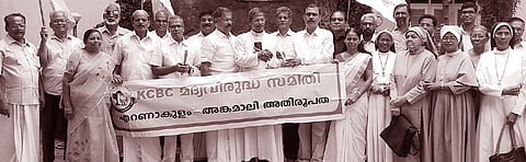 തദ്ദേശസ്വയംഭരണ സ്ഥാപനങ്ങള്ക്കുള്ള മദ്യനിരോധനാധികാരം പുനഃസ്ഥാപിക്കണമെന്ന് ആവശ്യപ്പെട്ട് എറണാകുളം-അങ്കമാലി അതിരൂപത കെ.സി.ബി.സി മദ്യവിരുദ്ധ സമിതി കലൂരില് സംഘടിപ്പിച്ച, മദ്യവിരുദ്ധ നില്പു സമരം ഡയറക്ടര് ഫാ. ജോര്ജ് നേരേവീട്ടില് ഉദ്ഘാടനം ചെയ്തു. അതിരൂപത പ്രസിഡന്റ് കെ. എ.പൗലോസ് കാച്ചപ്പള്ളി അധ്യക്ഷനായിരുന്നു. സംസ്ഥാന സെക്രട്ടറി അഡ്വ. ചാര്ളി പോള്, ചാണ്ടി ജോസ്, എം.പി. ജോസി, ഷൈബി പാപ്പച്ചന്, സിസ്റ്റര് റോസ്മിന്, സി. ജോണ്കുട്ടി, കെ.എ. റപ്പായി, ബാബു പോള്, പൗളിന് കൊറ്റമം, ശോശാമ്മ തോമസ്, ഇ.പി. വര്ഗീസ്, ആന്റു മുണ്ടാടന്, ജോര്ജ് ഇമ്മാനുവേല്, കെ. വി. ചാക്കോച്ചന്, സിസ്റ്റര് ബനീസി, ഷീല ജോസ്, സിസ്റ്റര് ആന്സില, സിസ്റ്റര് സുമ കട്ടിക്കാരന്, സിസ്റ്റര് മരിയറ്റ, ജോസ് ചാലിശ്ശേരി തുടങ്ങിയവര് പ്രസംഗിച്ചു.