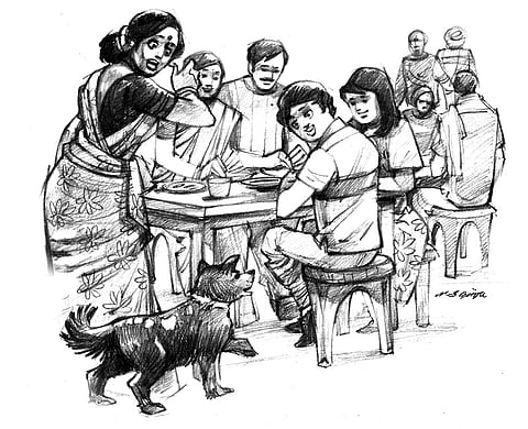 "ദാ ശേട്ടാ പിടി" – വില്പനക്കാ രി സ്ത്രീ ഒരു പൊതി അലക്സിയുടെ കയ്യില് കൊടുത്തു. അങ്ങ നെ നാലുപേര്ക്കും കിട്ടി. വില്പനക്കാരി അടുത്തയാള്ക്കു പൊതി കൊടുത്തു.