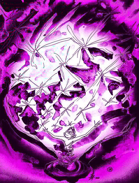 പ്രപഞ്ചം അതിന്റെ സംഭവങ്ങളും കാണുന്നു, പിന്നിലുള്ള ആ ദൃശ്യം കാണിക്കുന്നു എന്നു ദരീദ അവകാശപ്പെടുന്നില്ല. പിന്നിലുള്ളതു കാണാത്തതാണ്. അതു കാണുന്നില്ല. കാണാത്തതു ഇതാണ്, അതാണ് എന്ന് അവകാശപ്പെടുന്നവരുടെ അവകാശവാദങ്ങള് തെറ്റാണ് എന്നു തുറന്നുകാണിക്കുന്നു. അഥവാ ദൈവത്തിന്റെ വിഗ്രഹങ്ങളെ വെളിവാക്കി, ദൈവത്തെ കാണിക്കാനാവില്ല എന്നു സമര്ത്ഥിക്കുന്നു. നവോത്ഥാനം ശാസ്ത്രീയതയിലാശ്രയിച്ചു കാണുന്നതിനു പിന്നില് കാണാത്ത ആ ദൃശ്യം ഇല്ല എന്ന നിലപാടിനെ ചോദ്യം ചെയ്യുന്നു. നവോത്ഥാനത്തിനെതിരായ ഒരു നവോത്ഥാനമാണു ദരീദ പിന്തുടരുന്നത്.