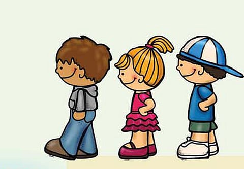 ഒരു പ്രത്യേക കളിക്കായി ഏതാനും കുട്ടികള് സ്കൂള് ഗ്രൗണ്ടില് അണിനിരന്നു, ഇങ്ങനെ: