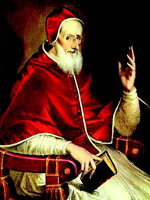 1566 ജനുവരി 7-ാം തീയതി കാര്ഡിനല് മൈക്കള് മാര്പാപ്പയായി തിരഞ്ഞെടുക്കപ്പെടുകയും അഞ്ചാം പിയൂസ് എന്ന നാമം സ്വീകരിക്കുകയും ചെയ്തു. 1553-ല് സമാപിച്ച ട്രെന്റ് സൂനഹദോസിന്റെ പരിഷ്കാരങ്ങള് പൂര്ത്തിയാക്കേണ്ട ചുമതല പുതിയ മാര്പാപ്പയുടെ ശിരസ്സിലായി. പുതിയ മീസാലും കാനോനനമസ്കാരവും വേദോപദേശവും അദ്ദേഹം പ്രസിദ്ധം ചെയ്തു. ക്രിസ്തീയ തത്ത്വസഖ്യം സ്ഥാപിച്ചു. ടര്ക്കികളുടെ ആക്രമണത്തെ ചെറുക്കാന് ഒരു നാവികസൈന്യം സംഘടിപ്പിച്ചു. സൈന്യത്തില് മാത്രം ആശ്രയിക്കാതെ ജപമാല ചൊല്ലി ദൈവമാതൃസഹായം അപേക്ഷിച്ചു. 1567 ഒക്ടോബര് 17-ാം തീയതിയിലെ ലെ പാന്റോ ഉള്ക്കടലില്വച്ചു പേപ്പല് സൈന്യം ടര്ക്കികളെ തോല്പിച്ചു ക്രൈസ്തവരാജ്യങ്ങളെ സംരക്ഷിച്ചു. വിവരം അദ്ദേഹം കര്ദിനാള് സംഘത്തെ അറിയിക്കുകയും ക്രിസ്ത്യാനികളുടെ സഹായമേ, ഞങ്ങള്ക്കുവേണ്ടി അപേക്ഷിക്കണേ എന്ന വാക്യം ദൈവമാതാവിന്റെ ലുത്തിനിയായില് ചേര്ക്കുകയും ചെയ്തു.