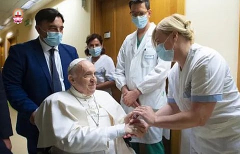 മുമ്പു നിശ്ചയിച്ചിരുന്നതിനേക്കാൾ അൽപം കൂടുതൽ ദിവസങ്ങൾ ഫ്രാൻസീസ് പാപ്പാ ആശുപത്രിയിൽ കഴിഞ്ഞേക്കുമെന്ന് വത്തിക്കാൻ വക്താവ് മത്തെയോ ബ്രൂണി അറിയിച്ചു. സുഖപ്രാപ്തി കൂടുതൽ ഫലപ്രദമാക്കുന്നതിനാണ് അതെന്ന് അദ്ദേഹം പറഞ്ഞു. എഴു ദിവസത്തെ ആശുപത്രിവാസമാണ് നേരത്തെ തീരുമാനിച്ചിരുന്നത്.