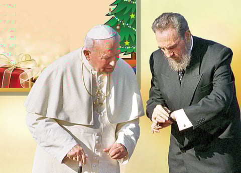 ഫിദെല് കാസ്ട്രോയുടെയും ക്യൂബയുടെയും ചരിത്രത്തിന് അവഗണിക്കാനാകാത്ത ഒരു പേരാണ് വി.ജോണ് പോള് രണ്ടാമന് മാര്പാപ്പ. മാര്പാപ്പയ്ക്കു ക്യൂബ ആതിഥ്യമരുളിയതും കാസ്ട്രോ ആദ്യമായി തന്റെ സൈനിക യൂണി ഫോം ഉപേക്ഷിച്ചു നീല സ്യൂട്ട് ധരിച്ചു മാര്പാപ്പയെ സ്വീകരിച്ചതും ലോകം ശ്രദ്ധയോടെ വീക്ഷിച്ച സംഭവങ്ങളായിരുന്നു. ചരിത്രം ജോണ് പോള് രണ്ടാമനെ കമ്മ്യൂണിസത്തിന് അന്ത്യം കുറിച്ച ലോകനേതാവായി കാണുന്നുണ്ടെങ്കിലും കമ്മ്യൂണിസ്റ്റ് നേതാവായ കാസ്ട്രോയ്ക്ക് അദ്ദേഹം ആദരണീയനായിരുന്നു. അന്ന് വത്തിക്കാന് വക്താവായിരുന്ന ജോവാക്കിം നവാരോ വാല്സ്, കാസ്ട്രോയുടെ വിയോഗത്തിന്റെ പശ്ചാത്തലത്തില് പഴയ സംഭവങ്ങളനുസ്മരിക്കുന്നു: