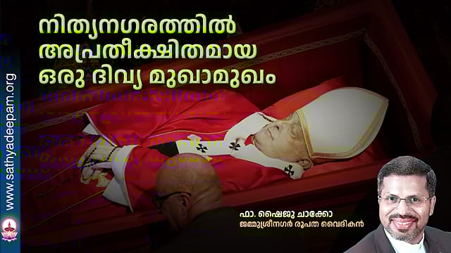 ആ നിമിഷം എന്റെ ഓര്മ്മയില് ഇനിയൊരിക്കലും മാഞ്ഞുപോകുകയില്ല. വിശുദ്ധിയുമായുള്ള ഒരു കണ്ടുമുട്ടലും നന്ദിയില് മുങ്ങിയ ഒരു വിടചൊല്ലലുമായിരുന്നു അത്. കൃപ പലപ്പോഴും ഏറ്റവും അപ്രതീക്ഷിതമായ വഴികളില് നമ്മെ തേടിയെത്തുന്നു എന്ന ശക്തമായ ഓര്മ്മപ്പെടുത്തലും.