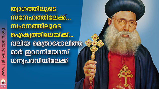 മലങ്കര സുറിയാനി കത്തോലിക്കാസഭയുടെ തിരുവനന്തപുരം മേജര് അതിഭദ്രാസനത്തിന്റെ പ്രഥമ മെത്രാപ്പൊലീത്തയും മലങ്കര പുനരൈക്യ പ്രസ്ഥാനത്തിന്റെ സ്ഥാപകനുമായ ആര്ച്ചുബിഷപ്പ് മാര് ഇവാനിയോസിനെ ഫ്രാന്സിസ് മാര്പാപ്പ ധന്യപദവിയിലേക്ക് ഉയര്ത്തിയതോടെ, ഒമ്പത് ദശകങ്ങള്ക്കു മുമ്പ് കൊളുത്തിവച്ച ഐക്യദീപ ഗോപുരത്തിന്റെ പ്രകാശ ധോരണിയില് കത്തോലിക്കാസഭ എത്രത്തോളം ആഹ്ലാദവതിയാണെന്ന് കണ്ട് വിശ്വസിക്കാനാവുന്നതേയുള്ളൂ.