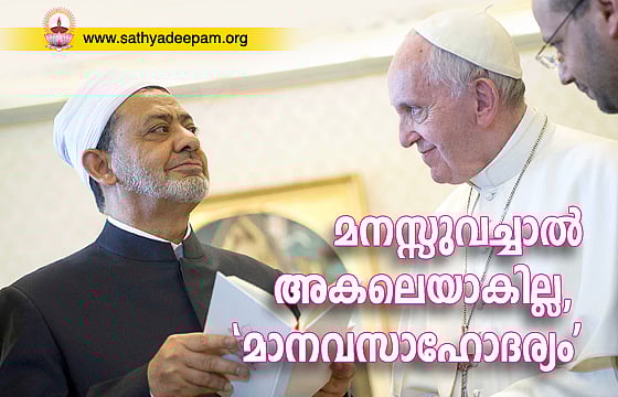 ലോകത്തില് സമാധാനംകാംഷിക്കുന്നവരെയാകെ സന്തോഷിപ്പിച്ച സമീപചരിത്രത്തിലെ ഒരു സുപ്രധാന ചുവടുവയ്പായിരുന്നു 2019 ഫെബ്രുവരിയിലെ അബുദാബി പ്രഖ്യാപനം, അഥവാ, ഫ്രാന്സിസ് മാര്പാപ്പയും ഈജിപ്തിലെ അല് അസ്ഹര് ഗ്രാന്ഡ് ഇമാം അഹമ്മദ് അല് തയ്യിബും സംയുക്തമായി പുറപ്പെടുവിച്ച മാനവസാഹോദര്യരേഖ. സംസ്കാരങ്ങളുടെ സംഘര്ഷമെന്നു മാന്യമായും ക്രിസ്ത്യന്-മുസ്ലീം സ്പര്ദ്ധയെന്നു പച്ചയ്ക്കും പറയുന്ന ഒരു ലോകയാഥാര്ത്ഥ്യത്തെ നേരിടുന്നതിനും പരിഹരിക്കുന്നതിനുമുള്ള സൗഖ്യസ്പര്ശമായി ആ രേഖ ഇന്നു നിലകൊള്ളുന്നു. പരസ്പരമാശ്ലേഷിച്ചു നില്ക്കുന്ന ഫ്രാന്സിസ് മാര്പാപ്പയുടെയും അല് അസ്ഹര് ഇമാമിന്റെയും ചിത്രങ്ങള് സാഹോദര്യത്തിന്റെ ജീവനുള്ള പ്രതീകങ്ങളായി ആഘോഷിക്കപ്പെടുന്നു. എന്നാല് അതൊരു സുപ്രഭാതത്തില് താനെ വന്നു ഭവിച്ചതല്ല. അതിനു പിന്നില് ആത്മാര്ത്ഥമായ ആഗ്രഹവും ബോധപൂര്വകമായ പരിശ്രമവും ക്ഷമാപൂര്വകമായ കാത്തിരിപ്പും ഉണ്ടായിരുന്നു. അതു തന്നെയാണ് അതിന്റെ മഹത്വവും.