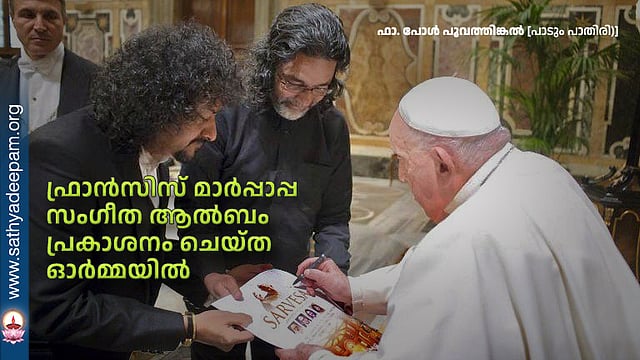പേന മുന്നോട്ടു കൊണ്ടുവന്നു തമാശ രൂപേണ എന്നെ നോക്കി ചിരിച്ചു. അതിനുശേഷം ഞങ്ങളുടെ പോസ്റ്ററിൽ ഒപ്പുവെച്ചു കുശാലാന്വേഷണം നടത്തി. ഒരു സംഗീത ആൽബം ആദ്യമായാണത്രെ ഫ്രാൻസിസ് മാർപ്പാപ്പ ആശിർവദിക്കുന്നത്.