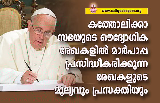 കത്തോലിക്കാ സഭയുടെ നേതൃത്വനിരയിലേയ്ക്ക് തിരഞ്ഞെടുക്കപ്പെട്ടവര്, തങ്ങളുടെ അജപാലനത്തിന് ഏല്പിച്ചിരിക്കുന്ന ദൈവജനത്തെ നയിക്കുന്നതിനും പഠിപ്പിക്കുന്നതിനും വ്യത്യസ്തമായ മാര്ഗ്ഗങ്ങള് അവലംബിക്കാറുണ്ട്. അതിലൊന്നാണ് 'എഴുത്തു'മാര്ഗ്ഗം അഥവാ 'രേഖാ'മാര്ഗ്ഗം. തങ്ങളുടെ ദൈവജനത്തിന്റെ ശ്രദ്ധയില് കൊണ്ടുവരേണ്ട കാര്യങ്ങള്, അവരെ പഠിപ്പിക്കേണ്ട കാര്യങ്ങള്, അവര്ക്ക് മാര്ഗ്ഗദര്ശനം നല്കേണ്ട കാര്യങ്ങള് 'എഴുത്തു' മാര്ഗ്ഗം അഥവാ 'രേഖാ'മൂലം അറിയിക്കുന്നു. ഇപ്രകാരമുള്ള എഴുത്തുകളില് കൈകാര്യം ചെയ്യപ്പെടുന്ന വിഷയത്തിന്റെ പ്രത്യേകതയും പ്രസക്തിയുമനുസരിച്ച് അവ എഴുതുന്നതിനുള്ള രീതികളും ശൈലികളും വ്യത്യസ്തങ്ങളാണ്. മാത്രവുമല്ല ഒരു പ്രത്യേക രേഖയില് കൈകാര്യം ചെയ്യപ്പെടുന്ന വിഷയത്തിന്റെ ഗൗരവമനുസരിച്ച് അവയെ വിവിധ പേരുകളില് തരംതിരിക്കുകയും (categorize) ചെയ്തിരിക്കുന്നു. ഇന്ന് കത്തോലിക്കാ സഭയിലെ ഔദ്യോഗിക രേഖകള് പ്രസിദ്ധീകരിക്കപ്പെടുക പ്രധാനമായും നാല് ഉറവിടങ്ങളില് നിന്നാണ്: 1) മാര്പാപ്പ, 2) സൂനഹദോസുകള്, 3) റോമന് കാര്യാലയം (Roman Curia), 4) മെത്രാന്മാര്. ഇതില് മാര്പാപ്പ പ്രസിദ്ധീകരിക്കുന്ന രേഖകള് 'മാര്പാപ്പയുടെ രേഖകള്' (Papal Documents) എന്ന പേരിലും സൂനഹദോസുകള് പ്രസിദ്ധീകരിക്കുന്ന രേഖകള് 'കൗണ്സില് രേഖകള്' (Council Documents) എന്ന പേരിലും; റോമന് കാര്യാലയം പ്രസിദ്ധീകരിക്കുന്ന രേഖകള് 'കാര്യാലയ രേഖകള്' (Curial Documents) എന്ന പേരിലും; മെത്രാന്മാര് തനിച്ചോ കൂട്ടായ്മയിലോ പുറപ്പെടുവിക്കുന്ന രേഖകള് 'മെത്രാന്മാരുടെ രേഖകള്' അഥവാ Bishop's Documents എന്ന പേരിലും അറിയപ്പെടുന്നു. മേല്പറഞ്ഞ നാല് ഉറവിടങ്ങളില് മാര്പാപ്പ പ്രസിദ്ധീകരിക്കുന്ന രേഖ (Papal Documents) കള് മാത്രമാണ് ഈ ലേഖനത്തിലെ പ്രതിപാദ്യവിഷയം.