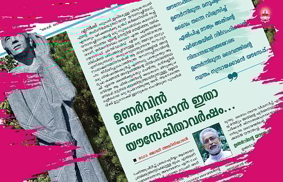 വിശുദ്ധ യൗസേപ്പിതാവിന്റെ വര്ഷത്തോടനുബന്ധിച്ച് വിശുദ്ധന്റെ ജീവിതവഴികളിലൂടെ വ്യത്യസ്തമായ ആശയങ്ങളിലൂടെ ആഴമാര്ന്ന അവബോധം നല്കാന് പ്രസ്തുത ലക്കത്തിലെ ലേഖനങ്ങള്ക്കു കഴിഞ്ഞു.