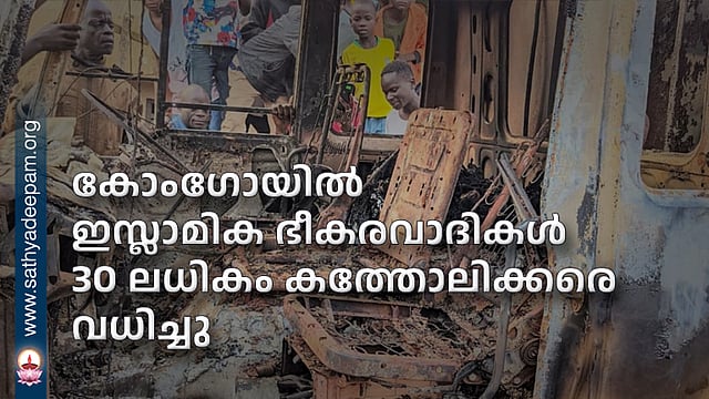 ആഫ്രിക്കന് രാജ്യമായ കോംഗോയുടെ വടക്കു പടിഞ്ഞാറന് ഭാഗത്ത് ഒരു കത്തോലിക്ക ദേവാലയത്തില് ഇസ്ലാമിക് സ്റ്റേറ്റുമായി ബന്ധപ്പെട്ട് സായുധ സംഘം നടത്തിയ ആക്രമണത്തില് 30 ലധികം കത്തോലിക്കര് കൊല്ലപ്പെട്ടു.