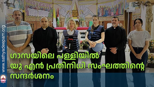 ഗാസയിലെ ലാറ്റിന് കത്തോലിക്ക ദേവാലയമായ ഹോളി ഫാമിലി പള്ളിയിലേക്ക് ഐക്യരാഷ്ട്രസഭയുടെ പ്രതിനിധി സംഘം അപ്രതീക്ഷിതമായ സന്ദര്ശനം നടത്തി. യുദ്ധം മൂലം ഭവനരഹിതരായ നൂറുകണക്കിന് ആളുകള്ക്ക് ഇപ്പോള് പള്ളിയില് അഭയം നല്കിയിട്ടുണ്ട്.