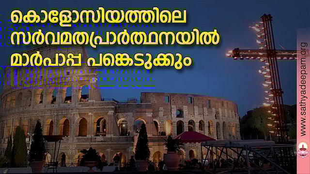 റോമിലെ കൊളോസിയത്തില് ഒക്ടോബര് അവസാനവാരം നടക്കുന്ന സര്വമതപ്രാര്ത്ഥനയില് ഫ്രാന്സിസ് മാര്പാപ്പ പങ്കെടുക്കും. സാന്ത് എജിദിയോ കമ്മ്യൂണിറ്റി എന്ന അത്മായപ്രസ്ഥാനം സംഘടിപ്പിച്ചിരിക്കുന്ന 'സമാധാനത്തിനായുള്ള വിലാപം' എന്ന മതാന്തര ഉച്ചകോടിയുടെ ഭാഗമാണ് പ്രാര്ത്ഥന. ലോകസമാധാനം പ്രമേയമാക്കി 1986 മുതല് എല്ലാ വര്ഷവും മതാന്തരസമ്മേളനം സംഘടിപ്പിച്ചു വരുന്നുണ്ട് സാന്ത് എജിദിയോ കമ്മ്യൂണിറ്റി. ലോകത്തിലെ പ്രധാനമതങ്ങളുടെയെല്ലാം പ്രതിനിധികള് സമാധാനസമ്മേളനത്തിലും പ്രാര്ത്ഥനയ്ക്കുമായി എത്തിച്ചേരുന്നുണ്ട്.
