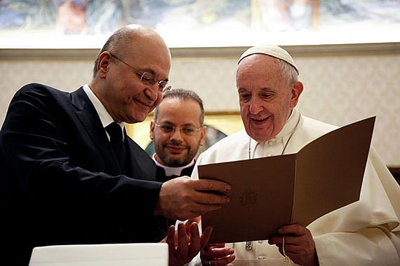 ഇറാഖ് പ്രസിഡന്റ് ബര്ഹാം സാലിഹ് വത്തിക്കാനിലെത്തി ഫ്രാന്സിസ് മാര്പാപ്പയുമായി കൂടിക്കാഴ്ച നടത്തി. ഇറാഖില് ആഴത്തില് വേരൂന്നിയ ക്രൈസ്തവജനതയുടെ ഭാവി ഇരുവരുടേയും സംഭാഷണവിഷയമായതായി വത്തിക്കാന് പത്രക്കുറിപ്പില് അറിയിച്ചു. ഇറാഖിലെ ക്രൈസ്തവരുടെ ചരിത്രപരമായ സാന്നിദ്ധ്യം സംരക്ഷിക്കേണ്ടതിന്റെ പ്രാധാന്യവും ഇറാഖി സാമൂഹ്യഘടനയുടെ പുനഃനിര്മ്മാണത്തിനു ക്രൈസ്തവര്ക്കു നല്കാന് കഴിയുന്ന നിര്ണായക സംഭാവനകളും ചര്ച്ച ചെയ്യപ്പെട്ടു. ഇറാഖിലെ മോസുളിനും കുര്ദിസ്ഥാനും ഇടയിലുള്ള നിനവേ സമതലങ്ങളില് ഒന്നാം നൂറ്റാണ്ട് മുതല് ക്രൈസ്തവ സാന്നിദ്ധ്യമുണ്ട്. സദ്ദാം ഹുസൈന്റെ പതനത്തോടെ സൃഷ്ടിക്കപ്പെട്ട അരക്ഷിതാവസ്ഥയെ തുടര്ന്ന് ക്രൈസ്തവര് അവിടെ നിന്നു പലായനമാരംഭിച്ചു. ഇസ്ലാമിക് സ്റ്റേറ്റ് ഈ പ്രദേശം പിടിച്ചടക്കിയതോടെ ക്രൈസ്തവരുടെ ദുരിതം പാരമ്യത്തിലെത്തി. ഭീകരവാദികളെ തുരത്തിയ ഈ പ്രദേശത്ത് അവശേഷിക്കുന്ന ക്രൈസ്തവര് ഇപ്പോള് അവരുടെ വീടുകളുടേയും പള്ളികളുടേയും പുനഃനിര്മ്മാണത്തിലേര്പ്പെട്ടിരിക്കുകയാണ്. ഇപ്പോള് അമേരിക്കയും ഇറാനും തമ്മില് രൂപപ്പെട്ടിരിക്കുന്ന സംഘര്ഷം ഇറാഖിലെ ക്രൈസ്തവരെ വീണ്ടും ആശങ്കാകുലരാക്കിയിരിക്കുകയാണെന്ന് സഭാനേതൃത്വം അറിയിച്ചു. ഇറാഖിലെ ക്രൈസ്തവര്ക്കു സുരക്ഷ നല്കാന് നടപടികളുണ്ടാകണമെന്നു വത്തിക്കാന് സ്റ്റേറ്റ് സെക്രട്ടറി കാര്ഡിനല് പിയെട്രോ പരോളിന് ഇറാഖി പ്രസിഡന്റിനോട് ആവശ്യപ്പെട്ടു.