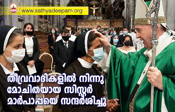 മാലിയില് ഇസ്ലാമിക തീവ്രവാദികളുടെ തടവില് നിന്നു മോചിതയായ സിസ്റ്റര് ഗ്ലോറിയ സെസിലിയ അര്ഗോതി, സെ.പീറ്റേഴ്സ് അങ്കണത്തില് വച്ചു ഫ്രാന്സിസ് മാര്പാപ്പയെ കാണുകയും ആശീര്വാദം സ്വീകരിക്കുകയും ചെയ്തു. തീവ്രവാദികള് തട്ടിക്കൊണ്ടു പോയി നാലു വര്ഷവും എട്ടു മാസവും കഴിഞ്ഞ ശേഷമാണ് സിസ്റ്റര് മോചിപ്പിക്കപ്പെട്ടത്. ഫ്രാന്സിസ്കന് സിസ്റ്റേഴ്സ് ഓഫ് മേരി ഇമ്മാക്കുലേറ്റ് എന്ന സന്യാസസമൂഹത്തിലെ അംഗമാണ് കൊളംബിയ സ്വദേശിയായ സിസ്റ്റര് ഗ്ലോറിയ.