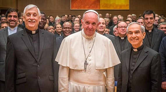 താന് അംഗമായ ഈശോസഭ സ്ഥാപിച്ച വി. ഇഗ്നേഷ്യസ് ലൊ യോളയുടെ തിരുനാള് ദിനത്തില് ഫ്രാന്സിസ് മാര്പാപ്പ ഈശോസഭയുടെ ആസ്ഥാനമന്ദിരത്തിലെത്തി വിരുന്നു കഴിച്ചു. ഈശോസഭാ മേധാവി ഫാ. അര്തുരോ സോസ മാര്പാപ്പയെ സ്വാഗതം ചെയ്തു. മാര്പാപ്പയാകുന്ന ആദ്യത്തെ ഈശോസഭാംഗമാണ് ഫ്രാന്സിസ് മാര്പാപ്പ. മാര്പാപ്പയായതിനു ശേഷം ലൊയോളയുടെ എല്ലാ തിരുനാള് ദിനങ്ങളിലും അദ്ദേഹം ഈശോസഭാ ആസ്ഥാനത്ത് എത്താറുണ്ട്. 1958-ലാണു മാര്പാപ്പ ഈശോസഭയുടെ നൊവിഷ്യേറ്റില് ചേര്ന്നത്. 1969-ല് വൈദികനായി. തുടര്ന്ന് നോവിസ് മാസ്റ്ററായി പ്രവര്ത്തിച്ചു. 1973 മുതല് 6 വര്ഷം അദ്ദേഹം സഭയുടെ അര്ജന്റീനിയന് പ്രൊവിന്ഷ്യലായും പ്രവര്ത്തിച്ചിട്ടുണ്ട്.
