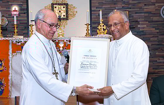 മെല്ബണ് സെന്റ് അല്ഫോന്സ കത്തീഡ്രല് ഇടവകയിലെ ദുക്റാന തിരുന്നാളിന്റെ തിരുക്കര്മ്മങ്ങള്ക്കും റാസ കുര്ബാനക്കും ശേഷം നടന്ന ലളിതമായ ചടങ്ങില് കത്തീഡ്രല് വികാരിയും രൂപത കണ്സല്റ്റേഴ്സ് മെമ്പറും എപ്പിസ്കോപ്പല് വികാരിയുമായ ഫാദര് വര്ഗ്ഗീസ് വാവോലില് സ്വാഗതം ആശംസിച്ചു. മെല്ബണ് സീറോ മലബാര് രൂപതാധ്യക്ഷന് ബിഷപ്പ് ബോസ്കോ പുത്തൂര് ഫാദര് ഫ്രാന്സിസ് കോലഞ്ചേരിയെ മോണ്സിഞ്ഞോര് പദവിയുടെ ചിഹ്നമായ ചുവപ്പു നിറത്തിലുള്ള അരപ്പട്ട അണിയിക്കുകയും നിയമനപത്രം നല്കുകയും ചെയ്തു. കഴിഞ്ഞ ഏഴു വര്ഷം വികാരി ജനറാള് എന്ന നിലയില് ശ്രദ്ധാര്ഹമായ സേവനങ്ങളായിരുന്ന് ബഹുമാനപ്പെട്ട ഫ്രാന്സിസ് അച്ചന് രൂപതക്ക് നല്കിയത് എന്ന് അച്ചനെ അഭിനന്ദിച്ചുകൊണ്ട് പിതാവ് പറഞ്ഞു. ഹ്യൂം കൗണ്സില് മേയറും മെല്ബണ് അസ്സിറിയന് ചര്ച്ച് ഓഫ് ദ് ഈസ്റ്റ് സഭാംഗവുമായ മേയര് ജോസഫ് ഹവീല് ചടങ്ങില് ആശംസകള് അര്പ്പിച്ച് സംസാരിച്ചു.
