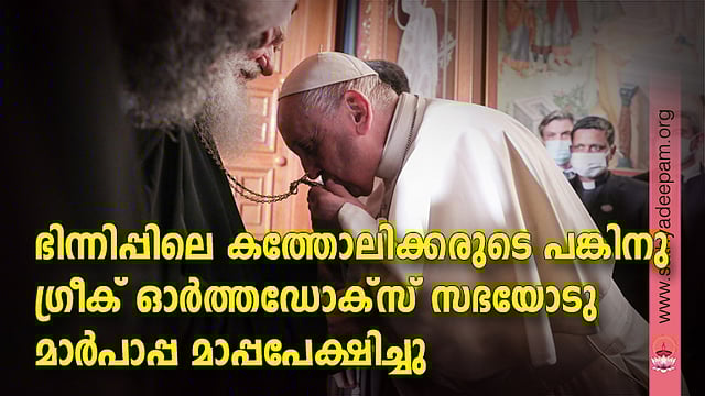 സഭയിലെ പിളര്പ്പില് കത്തോലിക്കാസഭ വഹിച്ച പങ്കിന്റെ പേരില് ഫ്രാന്സിസ് മാര്പാപ്പ ഗ്രീക് ഓര്ത്തഡോക്സ് സഭയുടെ പാത്രിയര്ക്കീസിനോടും സഭയോടും മാപ്പു ചോദിച്ചു. ''ലജ്ജാകരമാണ്, പാത്രിയര്ക്കീസ്, യേശുവിനോടോ സുവിശേഷത്തോടോ യാതൊരു ബന്ധവുമില്ലാത്തതും അധികാരദാഹത്താല് പ്രേരിതവുമായ കത്തോലിക്കാസഭയുടെ നടപടികളും തീരുമാനങ്ങളും നമ്മുടെ കൂട്ടായ്മയെ ഗുരുതരമായ വിധത്തില് ദുര്ബലമാക്കിയെന്നു ഞാന് സമ്മതിക്കുന്നു,'' മാര്പാപ്പ പറഞ്ഞു. ഗ്രീസ് സന്ദര്ശനത്തനിടെ ആഥന്സില് ഓര്ത്തഡോക്സ് പാത്രിയര്ക്കീസിനോടും നേതാക്കളോടും സംസാരിക്കുകയായിരുന്നു മാര്പാപ്പ. ഭിന്നിപ്പു കൊണ്ടു നമ്മുടെ ഫലദായകത്വം ബലഹീനമായെന്നും ഇന്ന് കത്തോലിക്കര് ചെയ്ത തെറ്റുകളുടെ പേരില് സഹോദരങ്ങളോടു മാപ്പു ചോദിക്കേണ്ടതിന്റെ ആവശ്യകത തനിക്കനുഭവപ്പെടുന്നുണ്ടെന്നും പാപ്പാ കൂട്ടിച്ചേര്ത്തു.
