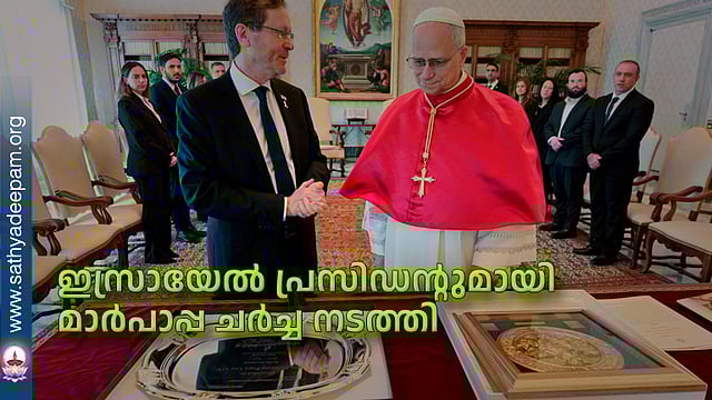 ഇസ്രായേല് പലസ്തീന് സംഘര്ഷം അവസാനിപ്പി ക്കുന്നതിന് ദ്വിരാഷ്ട്രപരിഹാരം ഉള്പ്പെടെയുള്ള മാര്ഗങ്ങളെക്കുറിച്ച് ലിയോ പതിനാലാമന് മാര്പാപ്പ ഇസ്രായേല് പ്രസിഡന്റ് ഇസഹാക്ക് ഹെര്സോഗുമായി ചര്ച്ച നടത്തി.