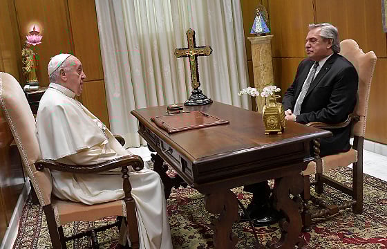 ഫ്രാന്സിസ് മാര്പാപ്പയുടെ മാതൃരാജ്യമായ അര്ജന്റീനയുടെ പ്രസിഡന്റ് ആല്ബെര്ട്ടോ ഫെര്ണാണ്ടസ് വത്തിക്കാനിലെത്തി മാര്പാപ്പയുമായി കൂടിക്കാഴ്ച നടത്തി. സഭയുടെ ശക്തമായ വിയോജിപ്പിനിടയില് അര്ജന്റീന ഭ്രൂണഹത്യ അനുവദനീയമാക്കുന്ന നിയമം ഈയിടെ പാസ്സാക്കിയിരുന്നു. അതിനുശേഷം ആദ്യമായാണ് ഇരുവരും കൂടിക്കാഴ്ച നടത്തുന്നത്. ഇടത് ആഭിമുഖ്യമുള്ള രാഷ്ട്രീയപാര്ട്ടിയുടെ നേതാവാണ് ആല്ബെര്ട്ടെ ഫെര്ണാണ്ടസ്. കത്തോലിക്കസഭാംഗമാണ് അദ്ദേഹം. 14 ആഴ്ച വരെയുള്ള ഭ്രൂണഹത്യ നിയമവിധേയമാക്കുന്ന ബില് അവതരിപ്പിക്കപ്പെട്ടത് അദ്ദേഹത്തിന്റെ നേതൃത്വത്തിലാണ്. ഇതിനെതിരായ സഭയുടെ പ്രചാരണത്തിനു ഫ്രാന്സിസ് മാര്പാപ്പ പിന്തുണ നല്കിയിരുന്നു.