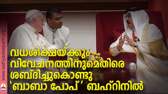 വധശിക്ഷയും മതപരമായ വിവേചനവും പാടില്ലെന്നു വ്യക്തമാക്കിക്കൊണ്ടു ഫ്രാന്സിസ് മാര്പാപ്പ ബഹ്റിന് സന്ദര്ശനത്തിനു തുടക്കമിട്ടു. മുസ്ലീം രാജ്യമായ ബഹ്റിനിലേയ്ക്ക് ആദ്യമായി എത്തുന്ന മാര്പാപ്പയ്ക്കു ഹൃദയംഗമമായ സ്വീകരണമാണ് രാജ്യം ഒരുക്കിയിരുന്നത്. അറബി ഭാഷയില് 'ബാബാ പോപ്പിനു' സ്വാഗതമോതുന്ന സന്ദേശങ്ങള് കഴിഞ്ഞ കുറെ ദിവസങ്ങളായി ബഹ്റിനിലെ തെരുവുകളിലും സമൂഹമാധ്യമങ്ങളിലും പ്രചരിക്കുന്നുണ്ടായിരുന്നു. ഫാദര് എന്ന അര്ത്ഥം വരുന്ന ബാബാ ചേര്ത്തു മാത്രമാണ് പോപ്പിനെ ബഹ്റിന് ജനത സംബോധന ചെയ്യുന്നത്.