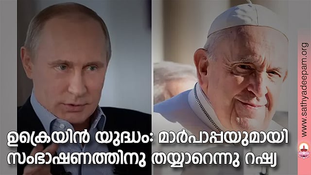 ഉക്രെയിന് യുദ്ധത്തിന് ഒരു പരിഹാരം കണ്ടെത്തുന്നതിനു ഫ്രാന്സിസ് മാര്പാപ്പയുമായും അമേരിക്ക, ഫ്രാന്സ് എന്നീ രാജ്യങ്ങളുമായും സംഭാഷണത്തിനു തയ്യാറെന്നു റഷ്യന് പ്രസിഡന്റിന്റെ വക്താവ് ദിമിത്രി പെസ്കോവ് അറിയിച്ചു. റഷ്യന് പ്രസിഡന്റ് വ്ളാദിമിര് പുടിനുമായും അമേരിക്കന് പ്രസിഡന്റ് ബൈഡനുമായും റഷ്യന് ഓര്ത്തഡോക്സ് സഭാ പാത്രിയര്ക്കീസ് കിറിലുമായും സംസാരിക്കണമെന്നു ഫ്രാന്സിസ് മാര്പാപ്പായോടു കഴിഞ്ഞയാഴ്ച ഫ്രഞ്ച് പ്രസിഡന്റ് ഇമ്മാനുവല് മാക്രോണ് അഭ്യര്ത്ഥിച്ചിരുന്നു. അതിനു പ്രതികരണമായിട്ടാണു റഷ്യയുടെ പ്രസ്താവന. പുടിനെയും പാത്രിയര്ക്കീസിനെയും മാത്രമല്ല ജോ ബൈഡനെയും സംഭാഷണത്തിന്റെ മേശയിലേയ്ക്കു കൊണ്ടുവരണമെന്നായിരുന്നു മാക്രോണിന്റെ വാക്കുകള്.