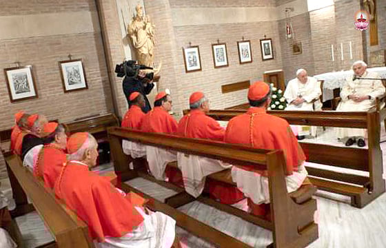 വിരമിച്ച പാപ്പാ ബെനഡിക്ട് പതിനാറാമനു ശബ്ദം നഷ്ടമായെന്നും സംസാരിക്കാന് കഴിയുന്നില്ലെന്നുമുള്ള വാര്ത്തകള് അദ്ദേഹത്തിന്റെ സെക്രട്ടറി ആര്ച്ചുബിഷപ് ജോര്ജ് ഗാന്സ്വീന് നിഷേധിച്ചു. നവംബര് 28 നു പുതിയ കാര്ഡിനല്മാര്ക്കൊപ്പം ഫ്രാന്സിസ് മാര്പാപ്പ, ബെനഡിക്ട് പതിനാറാമനെ സന്ദര്ശിച്ചിരുന്നു. അന്ന് മൈക്ക് ഉപയോഗിച്ച് അദ്ദേഹം പുതിയ കാര്ഡിനല്മാരോടു സം സാരിച്ചുവെന്നു സെക്രട്ടറി ചൂണ്ടിക്കാട്ടി. ശബ്ദം ബലഹീനമായിട്ടുണ്ടെങ്കിലും സംസാരിക്കാന് തടസ്സമില്ല. അണുബാധ മൂലമുള്ള ഒരു ത്വക് രോഗം പാപ്പയ്ക്കുണ്ട്. അതു വേദനാജനകമാണെങ്കിലും ഗുരുതരമല്ല. 93 വയസ്സുകാരന്റേതായ മറ്റു പ്രശ്നങ്ങളൊഴിച്ചാല് തൃപ്തികരമായ ആരോഗ്യാവസ്ഥയാണു അദ്ദേഹത്തിന്റേതെന്നും സെക്രട്ടറി വിശദീകരിച്ചു.