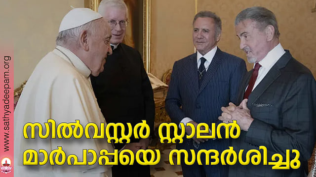 പ്രസിദ്ധ ഹോളിവുഡ് സിനിമാതാരം സില്വസ്റ്റര് സ്റ്റാലന് വത്തിക്കാനിലെത്തി ഫ്രാന്സിസ് മാര്പാപ്പയെ സന്ദര്ശിച്ചു. നടന്റെ ഭാര്യയും മക്കളും സഹോദരനും ഒപ്പമുണ്ടായിരുന്നു. 77 കാരനായ അദ്ദേഹം വത്തിക്കാന് മ്യൂസിയങ്ങളും സന്ദര്ശിച്ചു. കൂടിക്കാഴ്ചയുടെ ഫോട്ടോസ് നല്കിയെങ്കിലും വത്തിക്കാന് പ്രസ് ഓഫീസിന്റെ പത്രക്കുറിപ്പില് മറ്റു വിശദീകരണങ്ങളൊന്നും ലഭ്യമല്ല. ഇറ്റലിയില് നിന്ന് അമേരിക്കയിലേക്കു കുടിയേറിയ ഒരു കത്തോലിക്കാ കുടുംബത്തിലെ മൂന്നാം തലമുറക്കാരനാണ് സ്റ്റാലന്. യൗവനത്തില് മതവിശ്വാസത്തില് നിന്ന് അകന്നുവെങ്കിലും മക്കളുടെ ജനനത്തോടെ താന് വിശ്വാസജീവിതത്തെ ഗൗരവമായി കാണാന് തുടങ്ങിയെന്ന് മുമ്പ് ഒരഭിമുഖത്തില് അദ്ദേഹം പറഞ്ഞിട്ടുണ്ട്.
