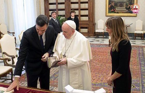 സ്പെയിനിന്റെ പ്രധാനമന്ത്രിയും സോഷ്യലിസ്റ്റ് നേതാവുമായ പേദ്രോ സാഞ്ചെസ് വത്തിക്കാനിലെത്തി ഫ്രാന്സിസ് മാര്പാപ്പയുമായി കൂടിക്കാഴ്ച നടത്തി. ഉഭയകക്ഷി ബന്ധങ്ങളെ കുറിച്ചും പൊതുതാത്പര്യമുള്ള വിഷയങ്ങളെ കുറിച്ചും സംഭാഷണം നടന്നതായി വത്തിക്കാന് പത്രക്കുറിപ്പില് അറിയിച്ചു. സ്പാനിഷ് സഭയും ഭരണകൂടവുമായുള്ള ബന്ധവും ചര്ച്ചാവിഷയമായി. ഇപ്പോഴത്തെ ആരോഗ്യ പ്രതിസന്ധി, യൂറോപ്പിന്റെ ഐക്യം, കുടിയേറ്റം തുടങ്ങിയവയും ചര്ച്ച ചെയ്യപ്പെട്ടു. സോഷ്യലിസ്റ്റ് വര്ക്കേഴ്സ് പാര്ടി നേതാവായ സാഞ്ചെസ് സ്പെയിനിലെ കത്തോലിക്കാ സഭാനേതൃത്വവുമായി പലപ്പോഴും സംഘര്ഷത്തില് ഏര്പ്പെട്ടിട്ടുള്ള നേതാവാണ്. സ്കൂളുകളിലെ മതബോധനം, കാരുണ്യവധം എന്നിവയെല്ലാം സഭയും സാഞ്ചെസും തമ്മില് ശക്തമായ അഭിപ്രായവ്യത്യാമുള്ള വിഷയങ്ങളാണ്.