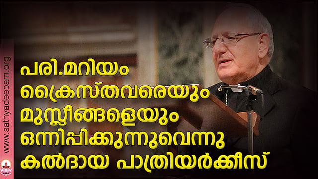 പരി. മറിയത്തിനു അനന്യമായ ഒരു സ്ഥാനമുണ്ടെന്നും ക്രൈസ്തവരെയും മുസ്ലീങ്ങളെയും ഒന്നിച്ചു കൊണ്ടുവരാന് പരി. മറിയത്തിനു കഴിയുന്നുവെന്നും കല്ദായ ക ത്തോലിക്കാസഭയുടെ പാത്രിയര് ക്കീസ് കാര്ഡിനല് ലൂയിസ് റാ ഫേല് സാകോ പ്രസ്താവിച്ചു. ബാ ഗ്ദാദില് പരി. മറിയത്തെക്കുറിച്ചുള്ള ഒരു ക്രിസ്ത്യന്-മുസ്ലീം സംയുക്ത സമ്മേളനത്തില് സംസാരിക്കുകയായിരുന്നു പാത്രിയര്ക്കീസ്. സുന്നി, ഷിയാ പണ്ഡിതരും ക്രൈസ്തവദൈവശാസ്ത്രജ്ഞരും സമ്മേളനത്തില് പങ്കെടുത്തു. ബാഗ്ദാദ് കത്തോലിക്കാ കത്തീഡ്രലില് നടന്ന സമ്മേളനത്തില് സ്ത്രീകളുടെ പദവിയെ കുറിച്ചുള്ള പ്രഭാഷണങ്ങളും ഉണ്ടായിരുന്നു.