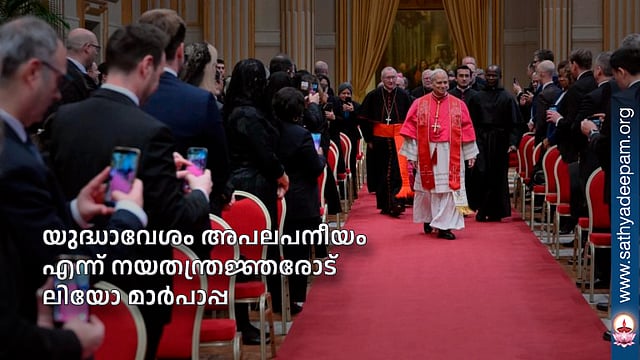 സമാധാനത്തെ അതില് തന്നെ ഒരു നന്മ എന്ന നിലയ്ക്കല്ല പലരും അന്വേഷിക്കുന്നതെന്ന് ലിയോ പതിനാലാമന് മാര്പാപ്പ പ്രസ്താവിച്ചു. മറിച്ച് സ്വന്തം ആധിപത്യം ഉറപ്പിക്കുന്നതിന്, ആയുധങ്ങളിലൂടെ സാധ്യമാക്കേണ്ട ഒരു അവസ്ഥയായിട്ടാണ് സമാധാനത്തെ കാണുന്നത്. ഇത് നിയമസംവിധാനത്തിന് ഗുരുതര മായ ഭീഷണിയാണ്. സമാധാനപര മായ പൊതുസഹവര്ത്തിത്വത്തെ ഇത് അപകടത്തിലാക്കുന്നു.