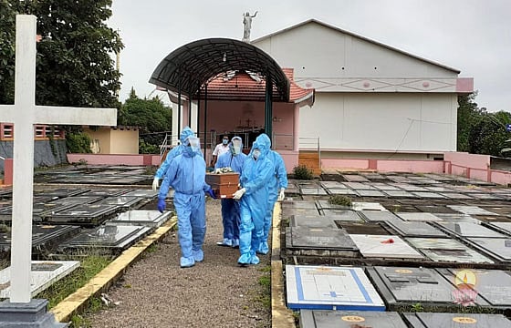 പാലാ: കോവിഡ് പ്രതിരോധ പ്രവര്ത്തനങ്ങള്ക്കായി പാലാ രൂപതയില് രൂപീകൃതമായ പാലാ സമരിറ്റന്സ് എന്ന പേരിലുള്ള സ്പെഷ്യല് ടാസ്ക് ഫോഴ്സ്, കോവിഡ് രോഗം സ്ഥിരീകരിച്ച വ്യക്തിയുടെ മൃതശരീരം പൂര്ണ്ണ ബഹുമതികളോടെ സംസ്കരിച്ചു. കോവിഡ് രോഗം ബാധിച്ചു മരിക്കുന്നവരുടെ മൃത സംസ്കാരത്തിനായി ഗവണ്മെന്റ് പുറപ്പെടുവിച്ച പ്രോട്ടോകോള് പൂര്ണ്ണമായും പാലിച്ചുകൊണ്ട് 12 അടി താഴ്ചയില് പ്രത്യേകം തയ്യാറാക്കിയ കല്ലറയില് പൂര്ണ്ണമായും മതപരമായ ചടങ്ങുകളോടെയാണ് മൃതദേഹം സംസ്കരിച്ചത്. സംസ്കാര ശുശ്രൂഷകളില് പങ്കെടുക്കാവുന്ന വ്യക്തികളുടെ എണ്ണം, സാമൂഹിക അകലം, പി.പി.ഇ. കിറ്റ് ശാസ്ത്രീയമായി ധരിച്ചുള്ള വോളണ്ടിയേഴ്സിന്റെ നേതൃത്വം എന്നിവ ശ്രദ്ധേയമായി. കോതനല്ലൂര്, കുറവലങ്ങാട് ഫൊറോനകളിലെ അല്മായരും വൈദികരുമടങ്ങുന്ന രണ്ട് ടീമുകളിലെ വ്യക്തികളാണ് മൃത സംസ്കാര ശുശ്രൂഷകള് നടത്തിയത്. ഫാ. ജോസഫ് മഠത്തിക്കുന്നേല്, ഫാ. മാത്യു എണ്ണക്കാപ്പിള്ളില്, ഫാ. ജോസഫ് കുറുമുട്ടം, ഫാ. ജോസഫ് താന്നിക്കാപ്പാറ, ഫാ. തോമസ് സിറില് തയ്യില്, ടോമി ചാത്തംകുന്നേല്, ബിജു കണ്ണംതറപ്പേല് എന്നിവര് നേതൃത്വം നല്കി.