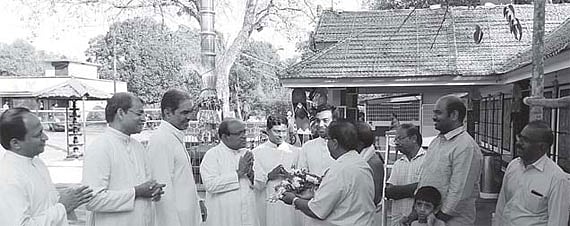 തൃശൂര്: സ്നേഹസൗഹാര്ദ്ദങ്ങളുടെ ആശംസകളുമായി ഏങ്ങണ്ടിയൂര് ആയിരംകണ്ണി ക്ഷേത്രമോഫീസില് തീരപ്രദേശത്തെ കത്തോലിക്ക ഇടവകകളിലെ വൈദികര് ഉത്സവത്തലേന്നുതന്നെയെത്തി. ക്ഷേത്രം സെക്രട്ടറി കാതോട് വിശ്വംഭരനും കര്മ്മി ഉത്തമന്ശാന്തിയും ചേര്ന്ന് വൈദികരെ സ്വീകരിച്ചു. കഴിഞ്ഞ നാല് വര്ഷങ്ങളായി തുടരുന്ന സ്നേഹസന്ദര്ശനം ചിരകാലം തുടരട്ടെയെന്ന് ഇതരമതസ്ഥരുടെ ദേവാലയ സന്ദര്ശനം തൃശൂരില് തുടങ്ങിവച്ച ജൂബിലി മിഷന് മെഡിക്കല് കോളജ് മുന് ഡയറക്ടര് റവ. ഡോ. ഫ്രാന്സിസ് ആലപ്പാട്ട് ആശംസിച്ചു. കണ്ടശ്ശാംകടവ് സെന്റ് മേരീസ് ഫൊറോന വികാരി ഫാ. ജെയിംസ് വടക്കൂട്ടിന്റെയും തൃശ്ശിവപേരൂര് സത്സംഗ് രക്ഷാധികാരി എം.ഐ. മിഷന് ആസ്പത്രി ഡയറക്ടര് ഫാ. ഫ്രാന്സിസ് ആലപ്പാട്ടിന്റെയും നേതൃത്വത്തില് എത്തിയ വൈദികസംഘത്തില് ഫാ. പ്രിന്സ് പൂവ്വത്തിങ്കല്, ഫാ. ജോയ് പുത്തൂര്, ഫാ. ജിക്സണ് താഴത്ത്, ഫാ. സണ്ജയ് തൈക്കാട്ടില്, എം.ഐ. ആസ്പത്രി സോഷ്യല് വിങ്ങിലെ പി. ജെ. മാര്ട്ടിന്, പി.എസ്. ഷിബു എന്നിവരുമുണ്ടായിരുന്നു. ക്ഷേത്രവളപ്പില് സ്ഥിതിചെയ്യുന്ന ശ്രീനാരായണഗുരുവിന്റെ സന്ദര്ശനസ്മാരകവും മതസൗഹാര്ദ്ദത്തിന്റെ നിത്യപ്രതീകമായി ക്ഷേത്രത്തിനു സമീപം സ്ഥിതിചെയ്യുന്ന 'തങ്ങളുടെ കബറിടവും' വൈദികര് സന്ദര്ശിച്ചു.