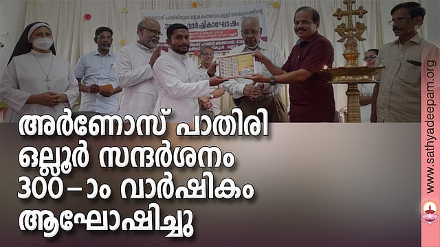 ഒല്ലൂര്: അര്ണോസ് പാതിരി ഒല്ലൂര്പള്ളി സന്ദര്ശിച്ചതിന്റെ 300-ാം വാര്ഷികം വിവിധ പരിപാടികളോടെ ആഘോഷിച്ചു. വേലൂര് അര്ണോസ് പാതിരി അക്കാദമിയും ഒല്ലൂര് സെ. റാഫേല് ഹൈസ്കൂളും സംയുക്തമായി നടത്തിയ പരിപാടികള് പ്രൊഫ. ജോര്ജ് മേനാച്ചേരി ഉദ്ഘാടനം ചെയ്തു. കവിയും ഭാഷാപണ്ഡിതനുമായിരുന്ന അര്ണോസ് പാതിരി ഒല്ലൂരില് വന്നുവെന്നത് നാട്ടുകാര്ക്ക് അഭിമാനമുള്ള കാര്യമാണെന്നും പള്ളി ആശീര്വ്വാദത്തോടനുബന്ധിച്ച് 1722-ല് അദ്ദേഹം മലയാളത്തിലും സംസ്കൃതത്തിലുമായി അദ്ദേഹം പ്രസംഗിച്ചിരിക്കാമെന്നും ചരിത്രപണ്ഡിതനായ പ്രൊഫ. മേനാച്ചേരി അഭിപ്രായപ്പെട്ടു.