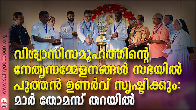 തുരുത്തുകളായി മാറിനില്ക്കാതെ സഭയിലെ വിശ്വാസിസമൂഹം ഒറ്റക്കെട്ടായുള്ള മുന്നേറ്റം ഈ കാലഘട്ടത്തിന്റെ ആവശ്യമാണ്. ഭക്തരെക്കാളുപരി ശിഷ്യരെയാണ് സഭയ്ക്ക് ആവശ്യം. സഭാസ്ഥാപനങ്ങളിലൂടെ സമൂഹം വളര്ന്നു; സഭ വളര്ന്നുവോ എന്ന് ചിന്തിക്കണം. വേര്തിരിവുകളില്ലാതെ ഒരുമിച്ചു നില്ക്കുമ്പോള് മാത്രമാണ് സഭ കൂടുതല് ശക്തിപ്പെട്ട് വളര്ച്ച പ്രാപിക്കുന്നത്. ദൗത്യങ്ങളെക്കുറിച്ച് ക്രൈസ്തവര്ക്ക് ബോധ്യമുണ്ടാകണം. പ്രതിസന്ധികളും പ്രതിബന്ധങ്ങളും ആഗോള കത്തോലിക്കാസഭയ്ക്ക് പുതുമയല്ല. ദൈവത്തിലാശ്രയിച്ച് നൂറ്റാണ്ടുകളായി അതിജീവിച്ചവരാണ് നാം. രണ്ടായിരത്തിലേറെ വര്ഷക്കാലമായി ലോകം മുഴുവന് നിറഞ്ഞുനില്ക്കുന്ന സഭയെ ഏറെ അഭിമാനത്തോടെ സഭാമക്കള് കാണണം. സഭാമക്കളില് കൂടുതല് സ്വത്വബോധവും സമുദായ ബോധവും സഭാബോധ്യങ്ങളും ആഴത്തില് വളര്ത്തിയെടുക്കുവാന് ഇടവകതല നേതൃസമ്മേളനങ്ങള്ക്കാവുമെന്നും മാര് തോമസ് തറയില് സൂചിപ്പിച്ചു.