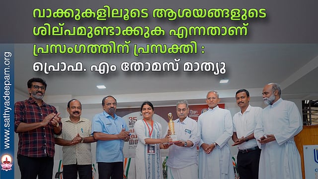 കൊച്ചി: വാക്കുകളിലൂടെ ആശയങ്ങളുടെ ശില്പം ഉണ്ടാക്കുക എന്നതാണ് പ്രസംഗത്തിന്റെ പ്രാധാന്യമെന്ന് പ്രൊഫ. എം തോമസ് മാത്യു അഭിപ്രായപ്പെട്ടു. വിചാര ലോകത്തിന്റെ ആധിപത്യം പുതിയ തലമുറയിലൂടെ വരണമെന്ന് അദ്ദേഹം പറഞ്ഞു. നമ്മുടെ ഉള്ളിൽ ഉണ്ടാകുന്ന ആശയങ്ങൾ അതേ രൂപത്തിൽ അവതരിപ്പിക്കാൻ സാധിക്കണം. ചാവറ അച്ചൻ ഒരു പുരോഹിതൻ മാത്രമല്ല, ചരിത്ര പുരുഷൻ ആണ് അന്ധകാരംനിറഞ്ഞ സമൂഹത്തിൽ ജീവിച്ച് ഒരു തിരിയെങ്കിലും കൊളുത്തുവാൻ തന്റെ സ്നേഹത്തിന്റെ എണ്ണ നൽകിയ വ്യക്തിയാണ് ചാവറ പിതാവെന്നും അദ്ദേഹം തുടർന്ന് പറഞ്ഞു.