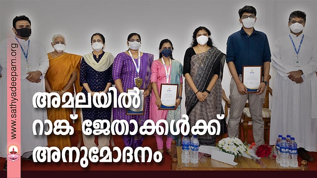കേരള ആരോഗ്യസര്വ്വകലാശാല നടത്തിയ മെഡിക്കല് യു.ജി., പി.ജി. പരീക്ഷകളില് അമല മെഡിക്കല് കോളേജില് നിന്നും റാങ്ക് നേടിയവരേയും മികച്ച വിജയം കരസ്ഥമാക്കിയവരേയും അനുമോദിച്ചു. ചടങ്ങിന്റെ ഉദ്ഘാടനവും മെഡല് ദാനവും ജില്ലാ കളക്ടര് ഹരിത വി. കുമാര് നിര്വ്വഹിച്ചു. അമല ഡയറക്ടര് ഫാ. ജൂലിയസ് അറയ്ക്കല്, ഫാ. ആന്റണി മണ്ണുമ്മല്, ഡോ. ബെറ്റ്സി തോമസ്, ഡോ. രാജേഷ് ആന്റോ, ഡോ. വിജയലക്ഷ്മി നായര്, ഡോ. പി.എഫ്. റാഫേല്, ഡോ. അജയ് ആര്, ഡോ. സേതുലക്ഷ്മി, ഡോ. നയന സുനില്, ബില്ഹാന് ബിനോയ് എന്നിവര് പ്രസംഗിച്ചു.