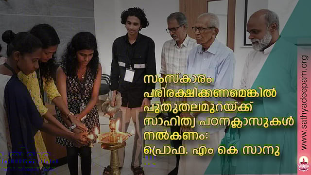 സംസ്കാരം പരിരക്ഷിക്കണമെങ്കിൽ വാണിജ്യ സംസ്കാരത്തിന്റെ ശുഷ്കമായ അന്തരീക്ഷത്തിൽ സാഹിത്യ പഠനക്ലാസുകൾ ഉണ്ടാവണമെന്ന് പ്രൊഫ. എം. കെ. സാനു അഭിപ്രായപ്പെട്ടു. യുവചേതന ഉണരണം, യുവജനങ്ങളെ സംഘടിപ്പിക്കുകയും ആത്മീയതയും സംസ്കാരവും ജീവിതമൂല്യങ്ങളും ഉള്ള പുതിയ അവബോധം സൃഷ്ടിക്കുകയും വേണമെന്ന് സാനു മാസ്റ്റർ അഭിപ്രായപ്പെട്ടു. മൂല്യ ശ്രുതി മാസിക, ചാവറ കൾച്ചറൽ സെന്റർ എന്നിവയുടെ ആഭിമുഖ്യത്തിൽ കോളേജ് വിദ്യാർത്ഥികൾക്കായി സംഘടിപ്പിച്ച ഏകദിന സാഹിത്യ ക്യാമ്പ് ഉദ് ഘാടനം ചെയ്ത് സംസാരിക്കുകയായിരുന്നു അദ്ദേഹം. ചാവറ കൾച്ചറൽ സെന്റർ ഡയറക്ടർ ഫാ. അനിൽ ഫിലിപ്പ് സി. എം. ഐ. അധ്യക്ഷത വഹിച്ചു. എഴുതാനുള്ള തീക്കനൽ ഉള്ളിൽ ഉണ്ടെങ്കിൽ അത് കത്തിച്ചുകൊണ്ടിരിക്കണം, എപ്പോഴാണോ അത് തീജ്വാല യായി വരുന്നത് അപ്പോൾ അറിയാതെ എഴുതി പോകുമെന്ന് സമ്മപനസമ്മേളനത്തിൽ മുഖ്യാഥിതിയായി പങ്കെടുത്ത തനുജ ഭട്ടതിരി പറഞ്ഞു.
