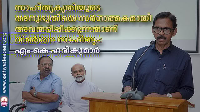 കൊച്ചി: ആസ്വാദനം എഴുതുന്നത് നിരൂപണം അല്ല, വിമര്ശകന് എന്നത് ഒരു പ്രചാരകനോ മധ്യവര്ത്തിയോ അല്ല, വിമര്ശനം ഒരു വിലയിരുത്തല് അല്ല എന്നും എം കെ ഹരികുമാര് അഭിപ്രായപ്പെട്ടു. ചാവറ കള്ച്ചറല് സെന്ററില് മലയാള ഭാഷാവാരാചരണത്തോടനുബന്ധിച്ച് നിരൂപണ സാഹിത്യം എന്ന വിഷയത്തെ അധികരിച്ച് സംസാരിക്കുകയായിരുന്നു അദ്ദേഹം.
