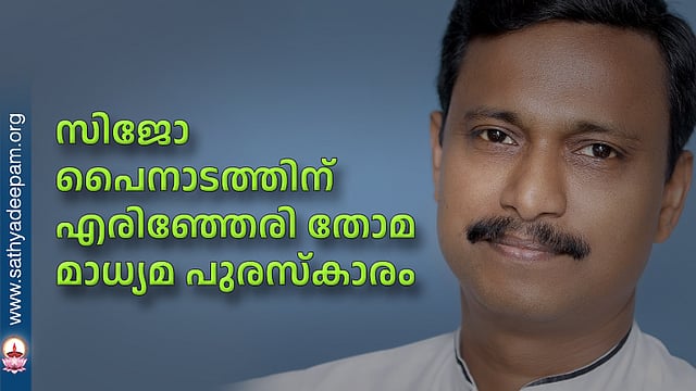 കൊച്ചി: തൃശൂര് സഹൃദയവേദി ഏര്പ്പെടുത്തിയ മേനാച്ചേരി എരിഞ്ഞേരി തോമ മീഡിയ അവാര്ഡിന് ദീപിക കൊച്ചി ബ്യൂറോ ചീഫ് സിജോ പൈനാടത്ത് അര്ഹനായി. 11,111 രൂപയും ഫലകവും പ്രശസ്തിപത്രവുമടങ്ങുന്നതാണു പുരസ്കാരം. ജൂലൈ 16ന് തേവര സേക്രട്ട് ഹാര്ട്ട് കോളജില് നടക്കുന്ന സമ്മേളനത്തില് പ്രതിപക്ഷ നേതാവ് വി.ഡി. സതീശന് പുരസ്കാരം സമര്പ്പിക്കുമെന്നു ഭാരവാഹികള് കൊച്ചിയിൽ പത്രസമ്മേളനത്തില് അറിയിച്ചു.