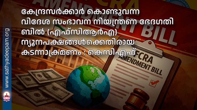 കൊച്ചി: കേന്ദ്രസര്ക്കാര് കൊണ്ടുവന്ന വിദേശ സംഭാവന നിയന്ത്രണ ഭേദഗതി ബില് (എഫ്സിആര്എ) ന്യൂനപക്ഷങ്ങള്ക്കെതിരായ കടന്നാക്രമണമാണെന്ന് കെസിഎഫ് (കേരള കാത്തലിക് ഫെഡറേഷന്) സംസ്ഥാന സമിതി.