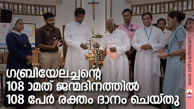 അമല നഗര്: പത്മഭൂഷന് ഗബ്രിയേലച്ചന്റെ 108-ാമത് ജന്മദിനം പ്രമാണിച്ച് അമല മെഡിക്കല് കോളേജില് ഡോക്ടേഴ്സും നഴ്സുമാരും വിദ്ധ്യാര്ത്ഥികളും ഗബ്രിയേലച്ചന്റെ ശിഷ്യഗണങ്ങളും ചേര്ന്ന് 108 പേര് രക്തം ദാനം ചെയ്തു.