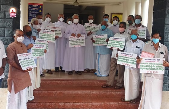 ഫോട്ടോ ക്യാപ്ഷൻ : ഇൻഫാം കോട്ടയം ജില്ല ഘടകം പാലാ ബിഷപ്സ് ഹൗസിൽ കർഷക അവകാശ പ്രഖ്യാപനം നടത്തുന്നു. പാലാ രൂപത മെത്രാൻ ബിഷപ്പ് മാർ ജോസഫ് കല്ലറങ്ങാട്ട്, സഹായമെത്രാൻ ബിഷപ്പ് മാർ ജേക്കബ് മുരിക്കൻ, ഇൻഫാം ദേശീയ ഡയറക്ടർ ഫാ. ജോസഫ് ചെറുകരക്കുന്നേൽ, രൂപതാ ഡയറക്ടർ ഫാ. ജോസഫ് തറപ്പേൽ, എസ് എം വൈ എം ഡയറക്ടർ ഫാ. സിറിൽ തയ്യിൽ, സോഷ്യൽ സർവീസ് അസി. ഡയറക്ടർ ഫാ. ജോബി താഴത്തു വരിക്കയിൽ, ഇൻഫാം പ്രസിഡന്റ് ശ്രീ മാത്യു മാംപറമ്പിൽ, സെക്രട്ടറി ശ്രീ ബേബി പന്തപ്പള്ളി, ശ്രീ സണ്ണി മുത്തോലപുരം, ശ്രീ ഡാന്റീസ് കൂനാനിക്കൽ, ശ്രീ മനു മാളികപ്പുറത്ത്, ബ്ര. ബിയർ മുക്കുടി കാട്ടിൽ തുടങ്ങിയവർ സമീപം.
