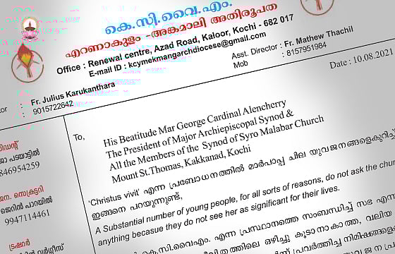 എന്നാല് കെ.സി.വൈഎം. എന്ന പ്രസ്ഥാനത്തെ സംബന്ധിച്ച് സഭ എന്നത് ഓരോ പ്രവര്ത്തകരുടെയും ജീവിതത്തിലെ ഒഴിച്ചുകൂടാനാകാത്ത, വലിയ സ്വാധീനം ചെലുത്തുന്ന ഒന്നാണ്. ഇടവകയുമായി ചേര്ന്ന് പ്രവര്ത്തിച്ച നിമിഷങ്ങളെക്കുറിച്ച് സന്തോഷത്തോടെ ഓര്ക്കാത്ത ഒരു കത്തോലിക്കാ യുവജനപ്രവര്ത്തകരും ഉണ്ടാകില്ല. മാര്പാപ്പയുടെ പ്രബോധനങ്ങളുടെ എല്ലാ ഊര്ജ്ജവും ഉള്ക്കൊണ്ട് കെ.സി.വൈ.എം. എറണാകുളം അങ്കമാലി മേജര് അതിരൂപത സമിതി സീറോ മലബാര് സിനഡിന് മുന്പില്, ഈ ആഗസ്റ്റ് മാസത്തില് നടക്കുവാന് പോകുന്ന സിനഡില്, ചര്ച്ച ചെയ്യപ്പെ ടണം എന്ന ആഗ്രഹത്തോടെ ആവശ്യപ്പെടുന്ന ഏതാനും കാര്യങ്ങള്.