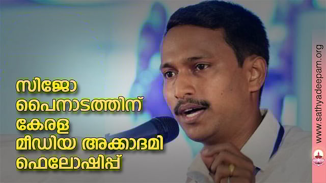 തിരുവനന്തപുരം: കേരള മീഡിയ അക്കാദമിയുടെ 20222023 ലെ മാധ്യമ ഗവേഷക ഫെലോഷിപ്പിന് ദീപിക കൊച്ചി ബ്യൂറോ ചീഫ് സിജോ പൈനാടത്ത് അര്ഹനായി. 'പാതിവഴിയില് പഠനം നിര്ത്തുന്ന ആദിവാസി കുട്ടികള്: ചരിത്രം, സാമൂഹ്യ, സാംസ്കാരിക പരിസരങ്ങളുടെ സ്വാധീനം' എന്ന വിഷയത്തിലുള്ള പഠനത്തിനാണു പൊതു ഗവേഷണ വിഭാഗത്തിലുള്ള ഫെലോഷിപ്പ്.