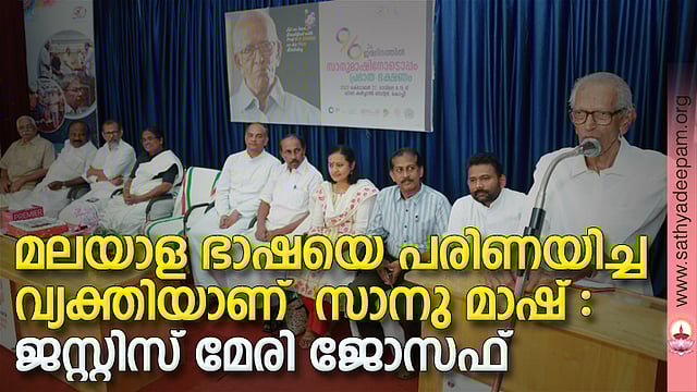 മലയാള ഭാഷയെ പരിണയിച്ച വ്യക്തിയാണ് എം.കെ. സാനു മാഷെന്നും, പ്രായത്തെ മറികടന്നുക്കൊണ്ട് ഏത് പരിപാടിയിലും പങ്കെടുക്കുവാന് സൗമനസ്യം കാണിക്കുന്ന എല്ലാ വേദികളിലെയും യുവാവാണ് സാനു മാഷെന്നും ജസ്റ്റിസ് മേരി ജോസഫ് അഭിപ്രായപ്പെട്ടു. ചാവറ കള്ച്ചറല് സെന്റര് സംഘടിപ്പിച്ച 96ാം ജന്മദിനത്തില് സാനു മാഷിനോടൊപ്പം പ്രഭാത ഭക്ഷണം, ഉദ്ഘാടനം ചെയ്തുസംസാരിക്കുകയായിരുന്നു കേരള ഹൈക്കോടതി ജഡ്ജി ജസ്റ്റിസ് മേരി ജോസഫ്.