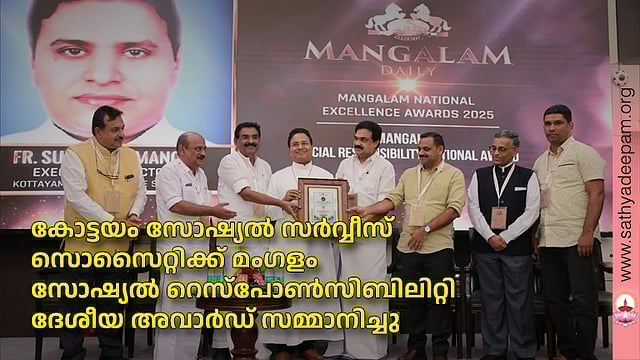 കോട്ടയം: മംഗളം പബ്ളിക്കേഷന്സിന്റെ 56-ാമത് വാര്ഷികത്തോടനുബന്ധിച്ച് ഏര്പ്പെടുത്തിയ സോഷ്യല് റെസ്പോണ്സിബിലിറ്റി ദേശീയ അവാര്ഡ് കോട്ടയം സോഷ്യല് സര്വ്വീസ് സൊസൈറ്റിയ്ക്ക് സമ്മാനിച്ചു. ഡല്ഹി കോണ്സ്റ്റിറ്റിയൂഷന്സ് ക്ലബിലെ സ്പീക്കര് ഹാളില് സംഘടിപ്പിച്ച ചടങ്ങില് കെ.എസ്.എസ്.എസ് എക്സിക്യൂട്ടീവ് ഡയറക്ടര് ഫാ. സുനില് പെരുമാനൂര് അവാര്ഡ് ഏറ്റുവാങ്ങി.