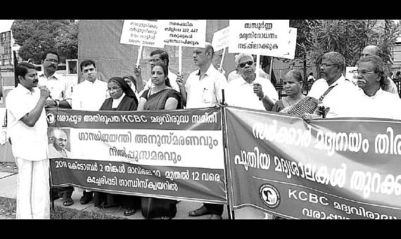 കൊച്ചി: രാഷ്ട്രപിതാവ് മഹാത്മാഗാന്ധിയുടെ 150-ാം ജന്മദിനത്തോടനുബന്ധിച്ച് ഒക്ടോബര് 2-ാം തീയതി കച്ചേരിപ്പടി ഗാന്ധിസ്ക്വയറിന് മുന്നില് വരാപ്പുഴ അതിരൂപത മദ്യവിരുദ്ധ സമിതി സംഘടിപ്പിച്ച അനുസ്മരണ സമ്മേളനവും, സര്ക്കാരിന്റെ മദ്യനയത്തില് പ്രതിഷേധിച്ചുകൊണ്ടുള്ള നില്പ്പുസമരവും കേരള ലാറ്റിന് കാത്തലിക് സംസ്ഥാന ട്രഷറര് ഹെന്ട്രി ഓസ്റ്റിന് ഉദ് ഘാടനം ചെയ്തു.
