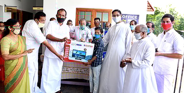 കാലടി: മലയാറ്റൂര് പള്ളിയുടെ ആഭിമുഖ്യത്തില് 17 കുട്ടികള്ക്കായി സ്മാര്ട്ട് മൊബൈല് ഫോണ്, ടി.വി. എന്നിവ വിതരണം ചെയ്തു. ബെന്നി ബഹനാന് എം.പി. ഉദ്ഘാടനം ചെയ്തു. വികാരി ഫാ. വര്ഗീസ് മണവാളന് അദ്ധ്യക്ഷത വഹിച്ചു. കൈക്കാരന് ബിജു ആഗസ്തി ചിറയത്ത്, വൈസ് ചെയര്മാന് വര്ഗീസ് മേനാച്ചേരി, സ്കൂള് പ്രിന്സിപ്പാള് ഡോ. ബിജോയ് ചിറയത്ത്, ഹെഡ്മിസ്ട്രസ് മേരി സെബി, ഫാ. തോമസ് മൈപ്പാന് എന്നിവര് പ്രസംഗിച്ചു.